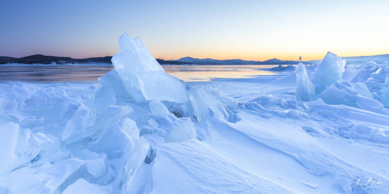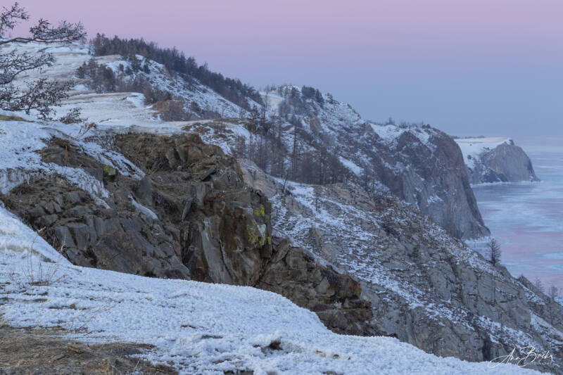 Mijn fotoreeks, 'Baikalmeer', brengt hulde aan dit natuurlijke wonder. Ik neem je mee door een betoverend winterlandschap waar bomen zich hullen in mysterieuze sneeuwmantels en temperaturen trotseren tot -35°C.